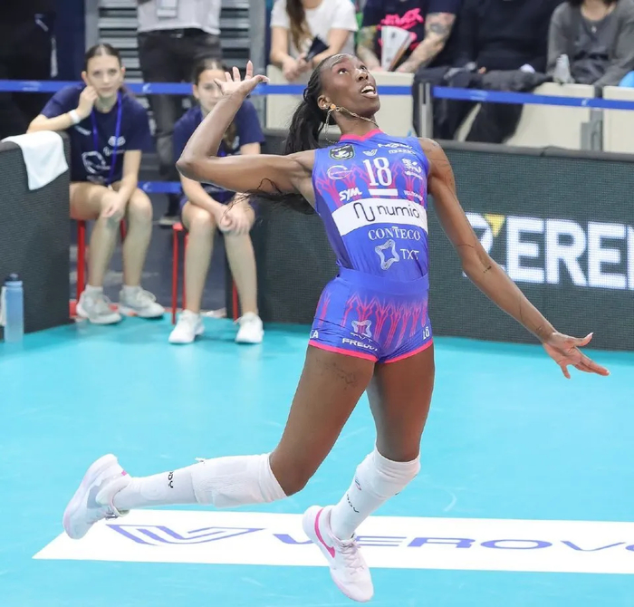这场比赛堪称世界女排顶尖攻手的正面硬刚,埃格努与马尔科娃的隔网对轰,成为全场最吸睛的看点,两人的发挥直接左右了比赛走势。开局阶段,埃格努状态彻底拉满,暴力扣球势如破竹,无论是前排强攻还是后排调整攻,都让瓦基弗银行的拦防体系难以招架,扣球成功率居高不下。在她的强势带动下,米兰全队士气高涨,稳稳掌控比赛节奏,轻松拿下前两局,眼看就要以3-0的比分横扫对手,提前锁定首回合胜势,可谁也没想到,比赛剧情从第三局开始彻底反转。
