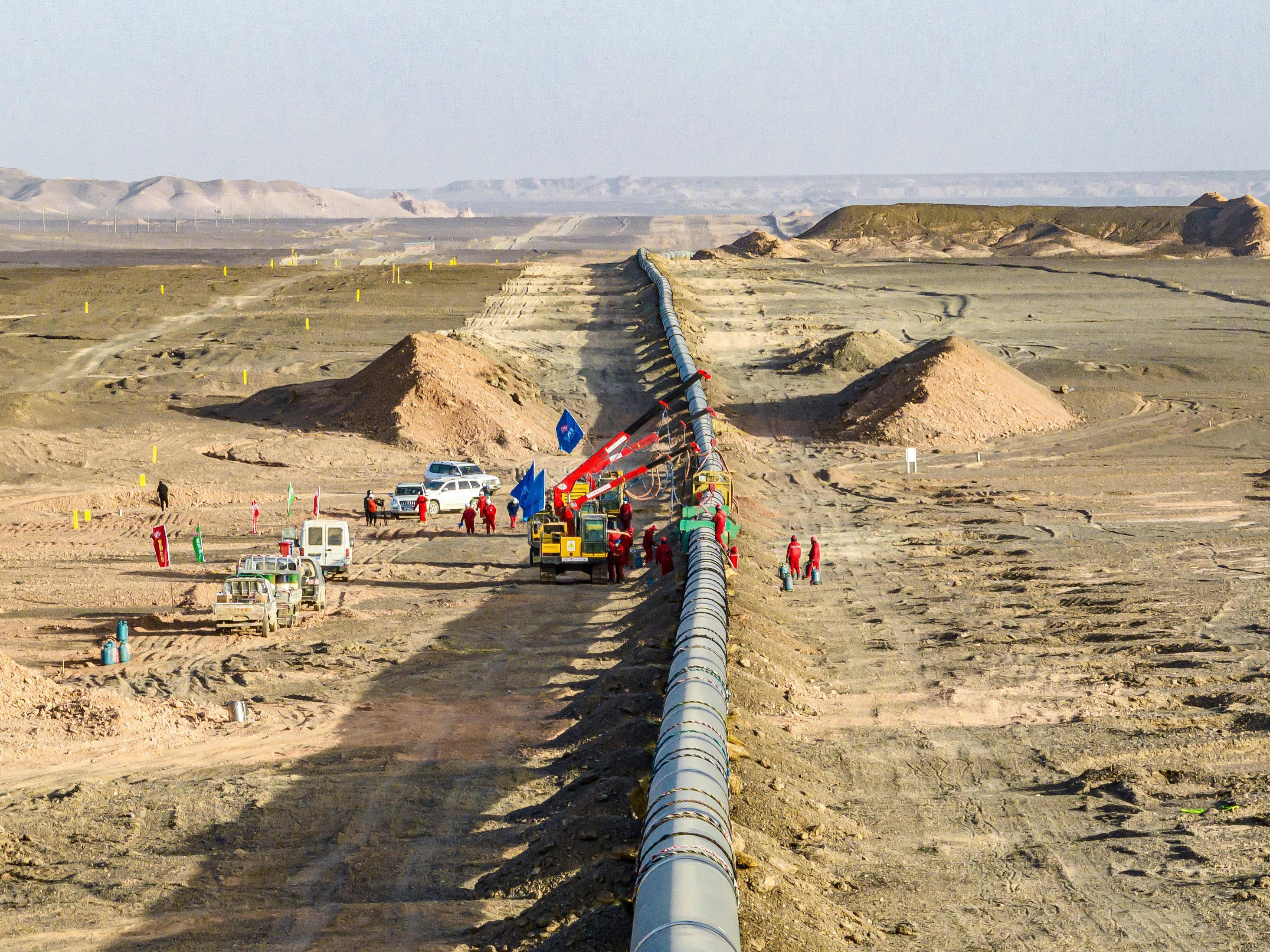 接下来两年多的时间里,一条横跨千里的“能源生命线”在中国与中亚工程人员的努力下,从戈壁滩中奇迹般崛起。